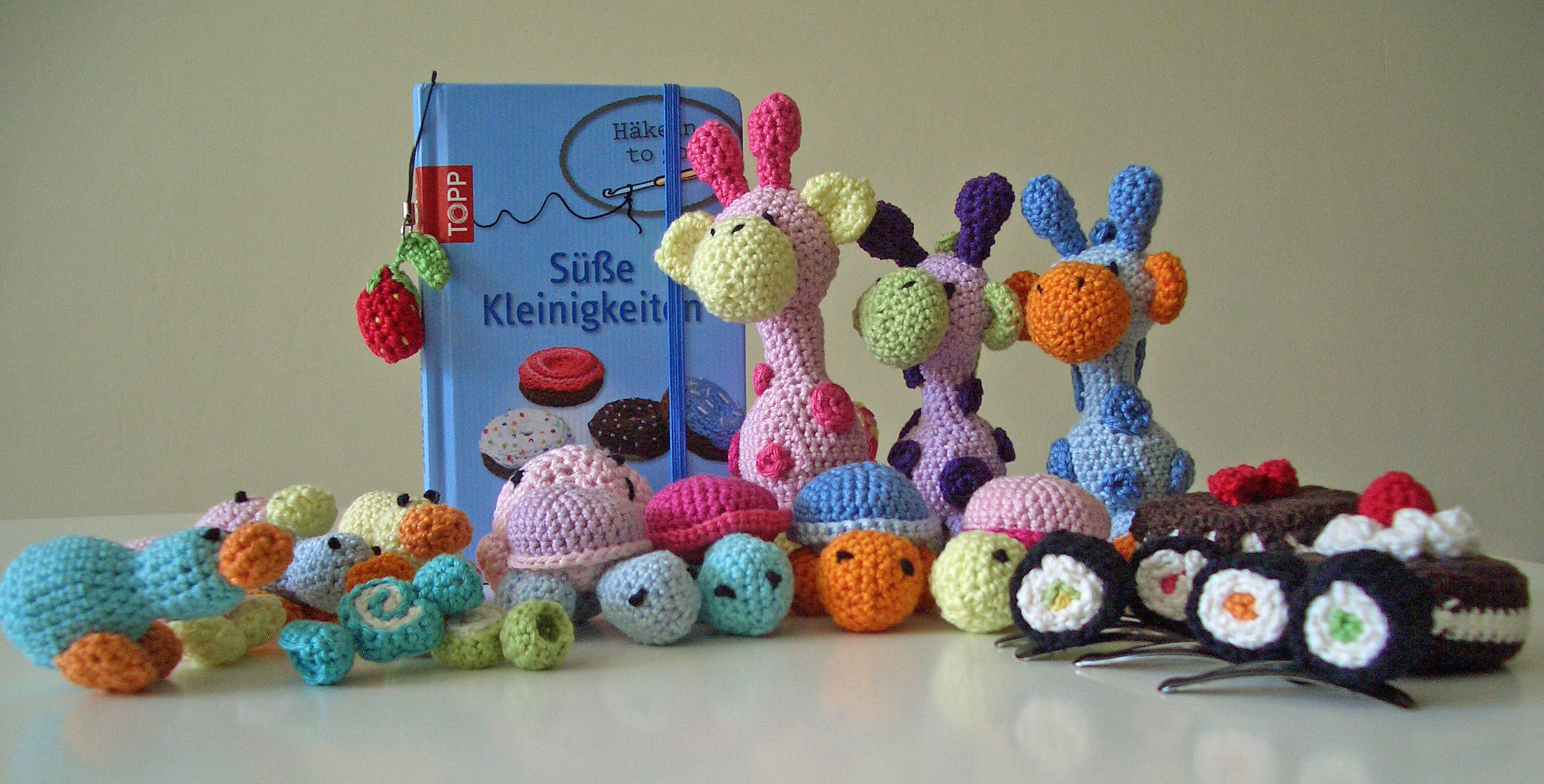 In dem Büchlein findest du die unterschiedlichsten Projekte, wie Tiere, Sushi, Küchlein, Glücksbringer, Schlüsselanhänger,…viele können dann zu Schmuck oder Deko für Geschenke verwandelt werden.