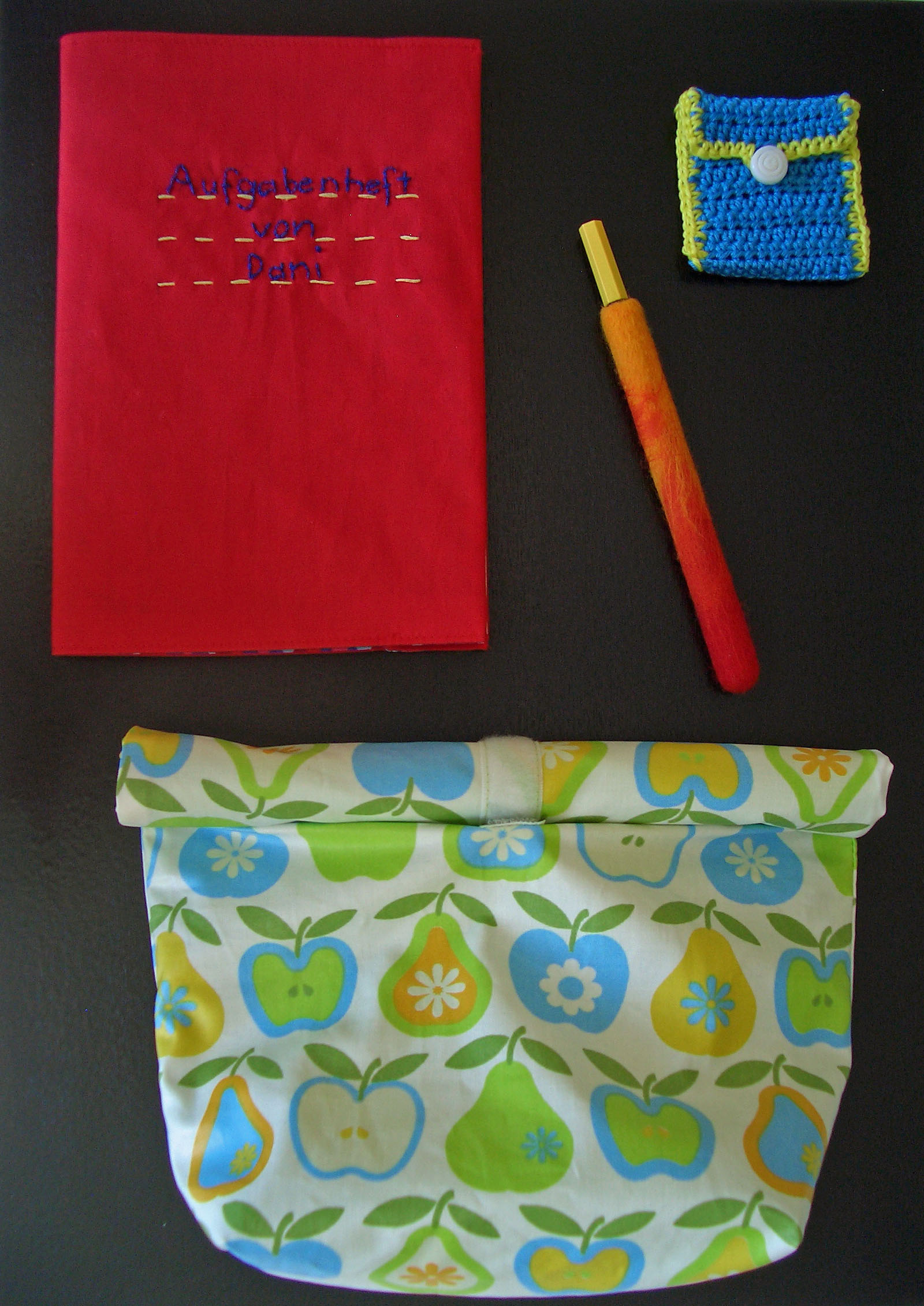 In den nächsten zwei Wochen nähen, häkeln, filzen und besticken wir Nützliches für die Schule.