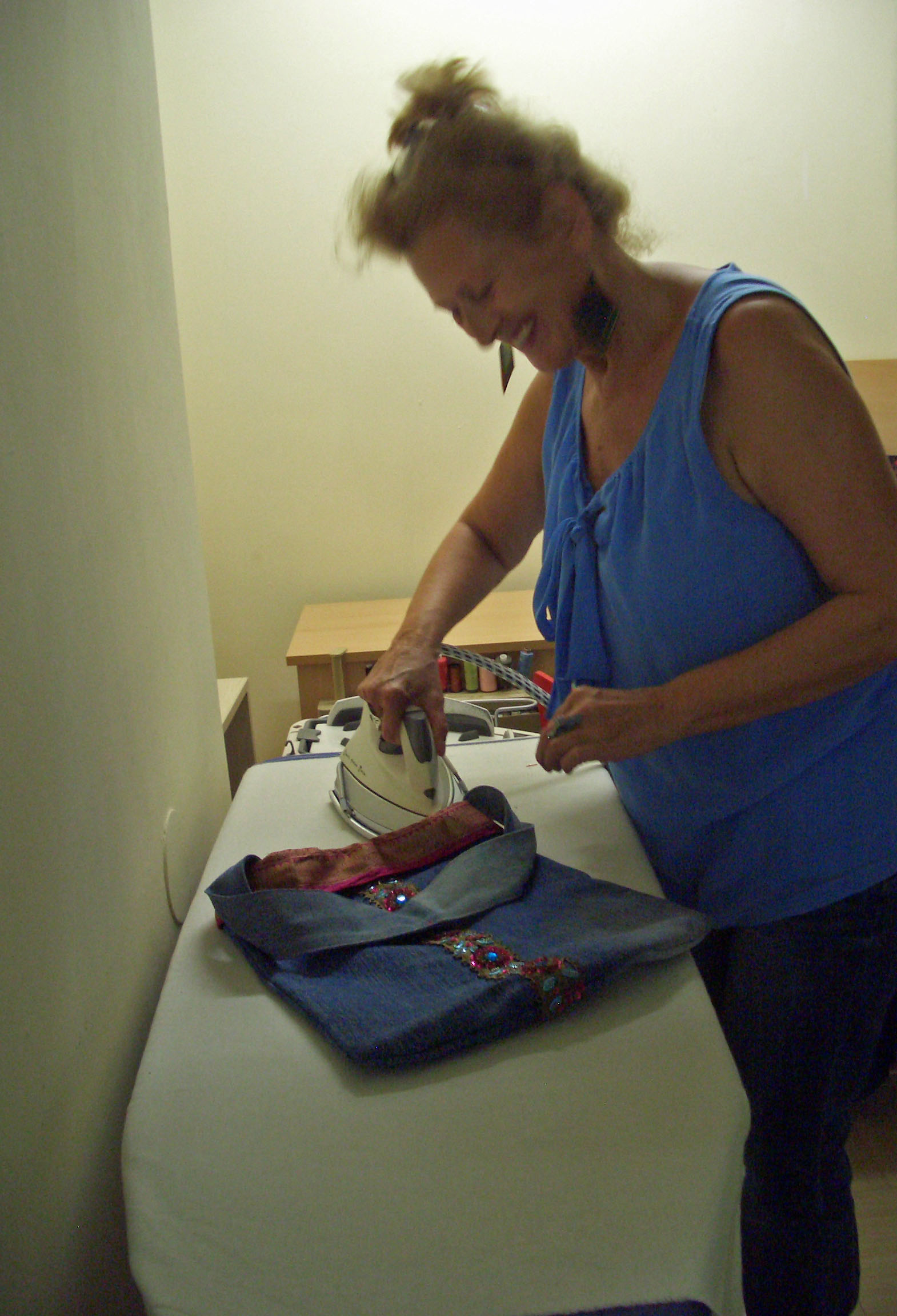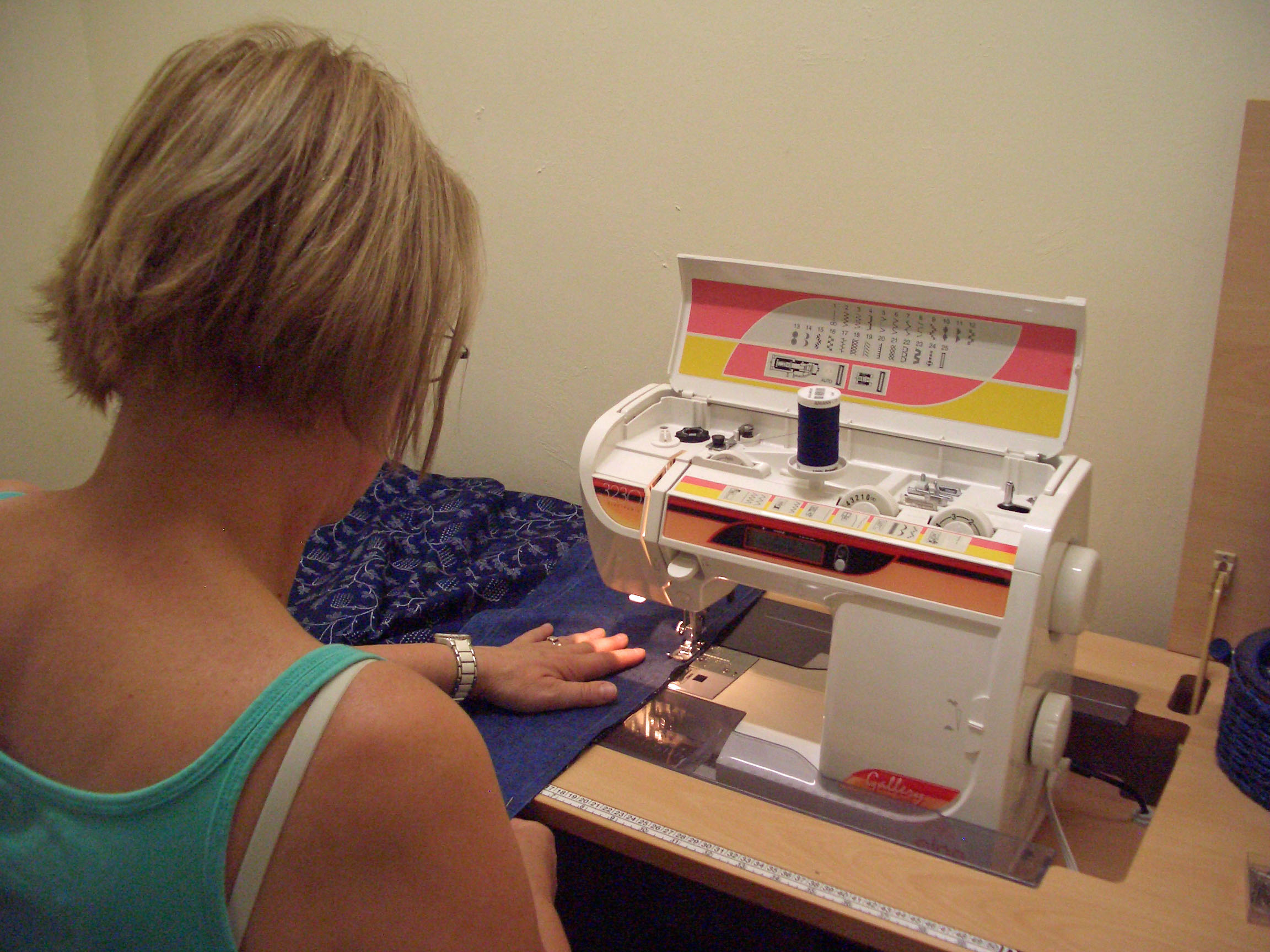 Diesmal entstand eine praktische Handtasche und ein Tischtuch aus Blaudruck-Stoff wurde begonnen.