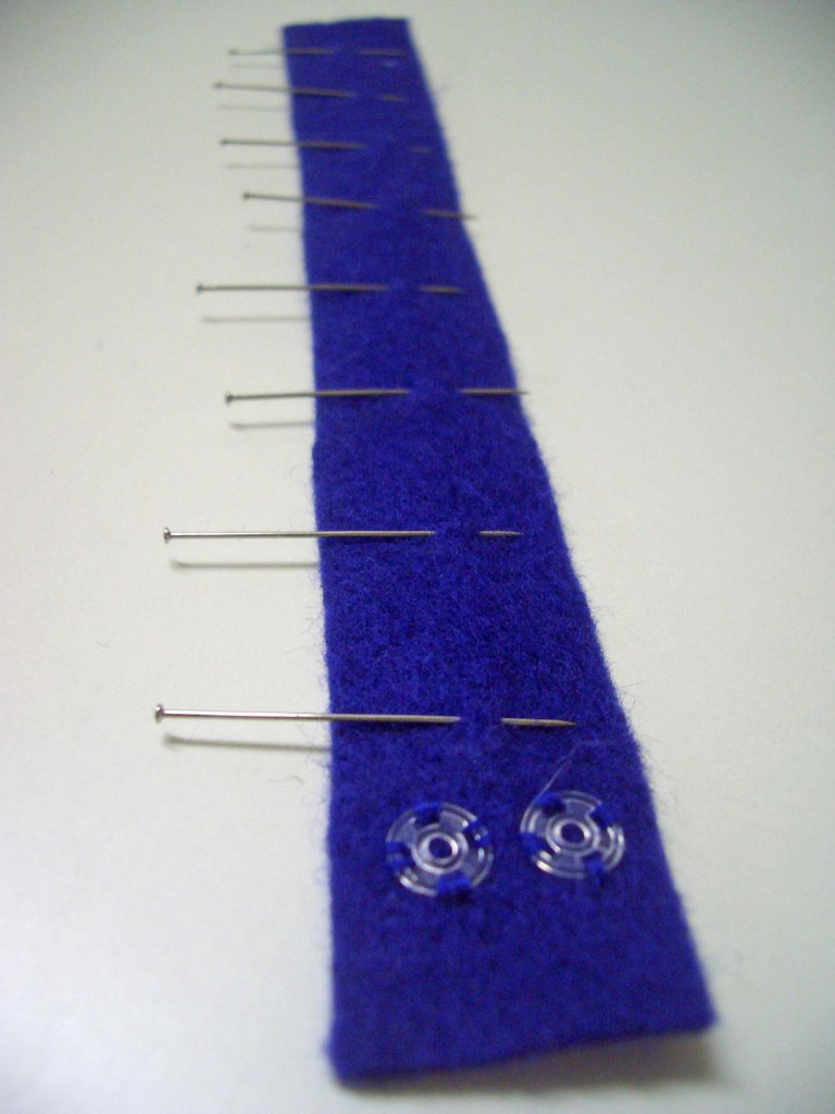 - Markiere auf einem Filzstreifen 1, 5 cm vom Rand, unterhalb dieser Linie wird der Verschluss angenäht.