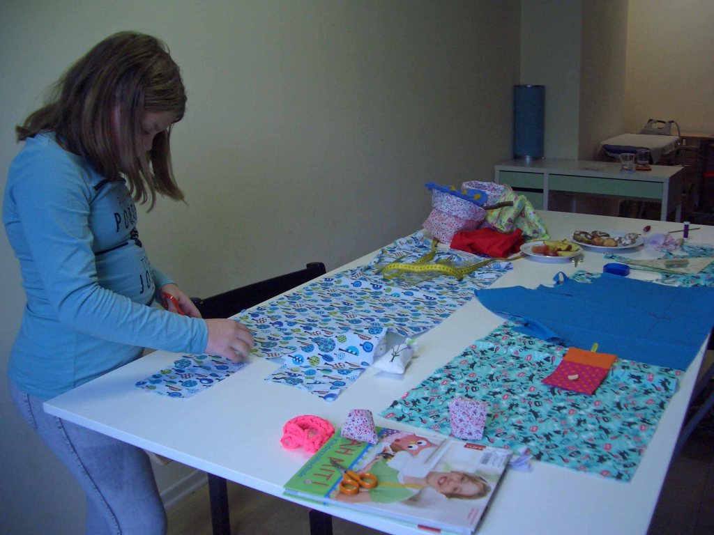 Obwohl das Nähen an der Nähmaschine eindeutig die liebste Beschäftigung war, haben einige Kinder auch gefilzt und gehäkelt. Hier ein paar Fotos der fleißigen Handarbeiterinnen und Handarbeiter und ihrer Werke.