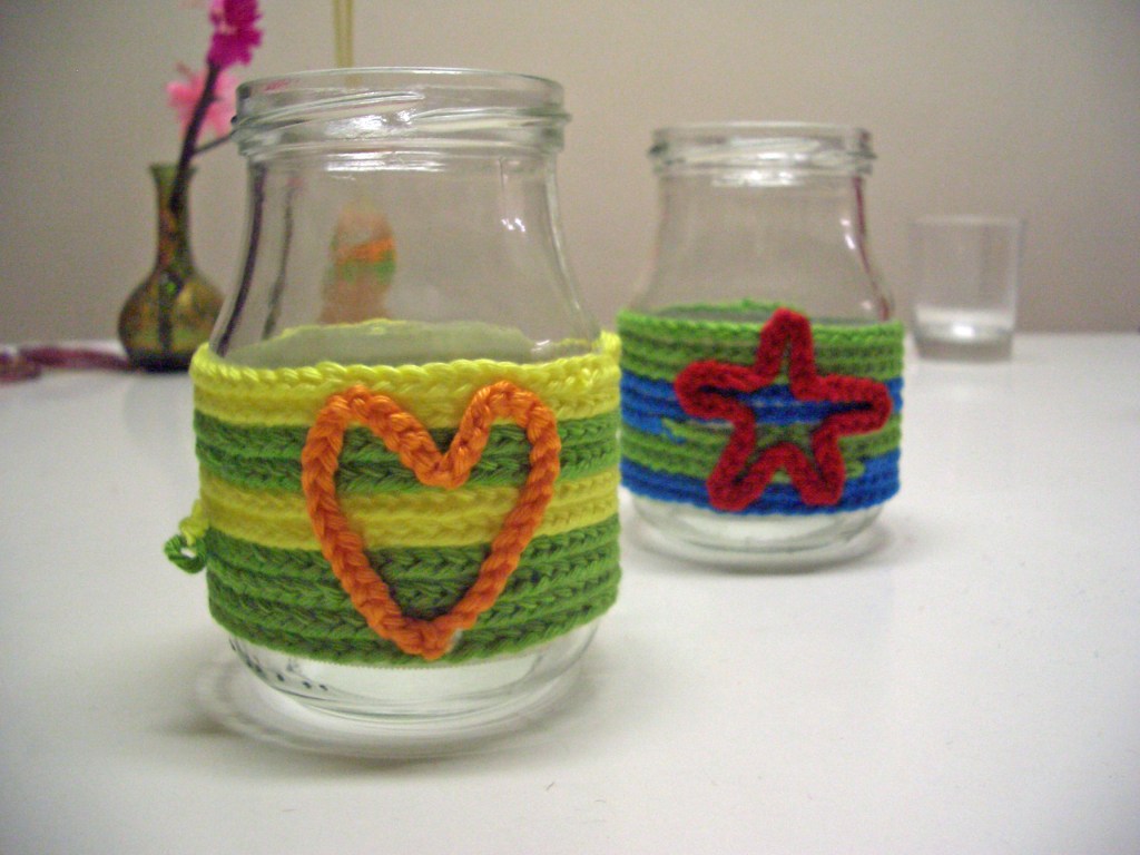 Mit einer Luftmaschenkette kannst du zum Beispiel Gläser oder Dosen verzieren.