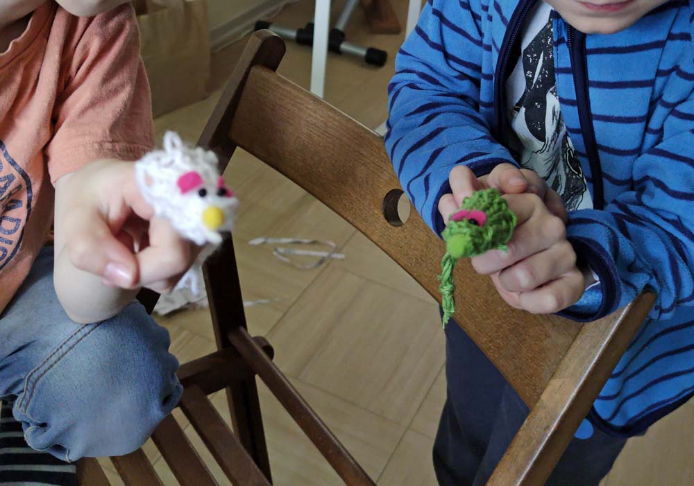 In der Ferienwoche sind wieder viele verschiedene Werkstücke entstanden. Es wurde gehäkelt, genäht, gefilzt, geknüpft und mit der Strickliesel gestrickt.