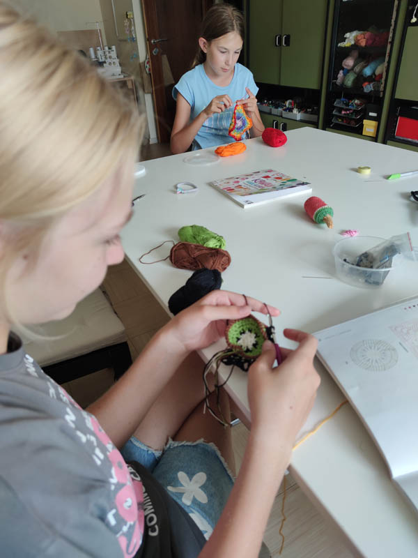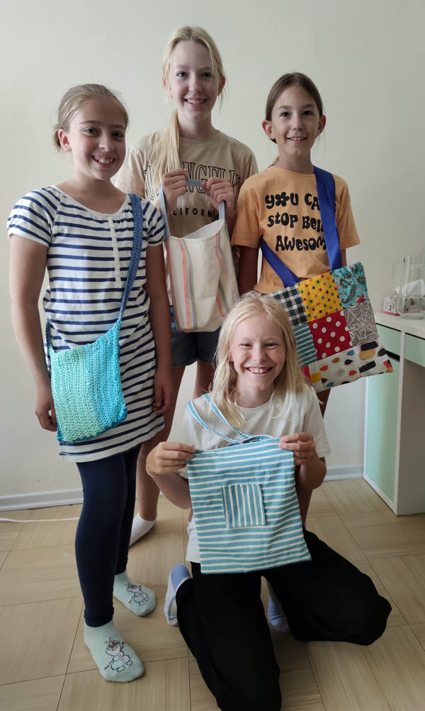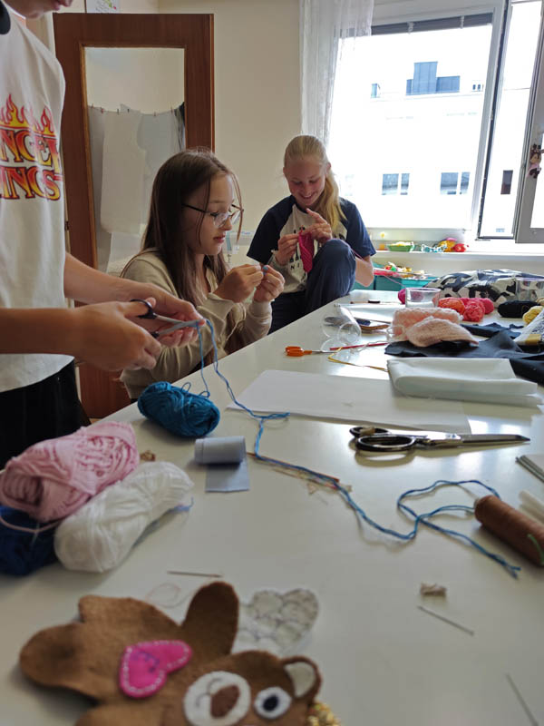 Die Kinder haben viel gehäkelt, genäht und gestickt. Besonders Taschen aus unterschiedlichen Materialien und Grannysquares waren beliebt.