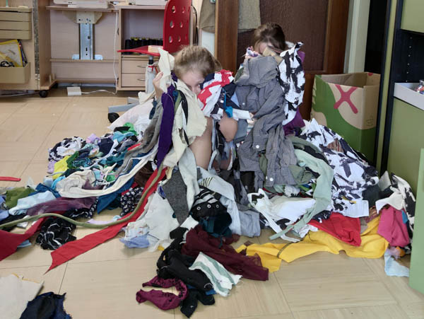 Spaß im Atelier mit Fotoshooting, spielen mit dem Hund und im Stoffresteberg:
