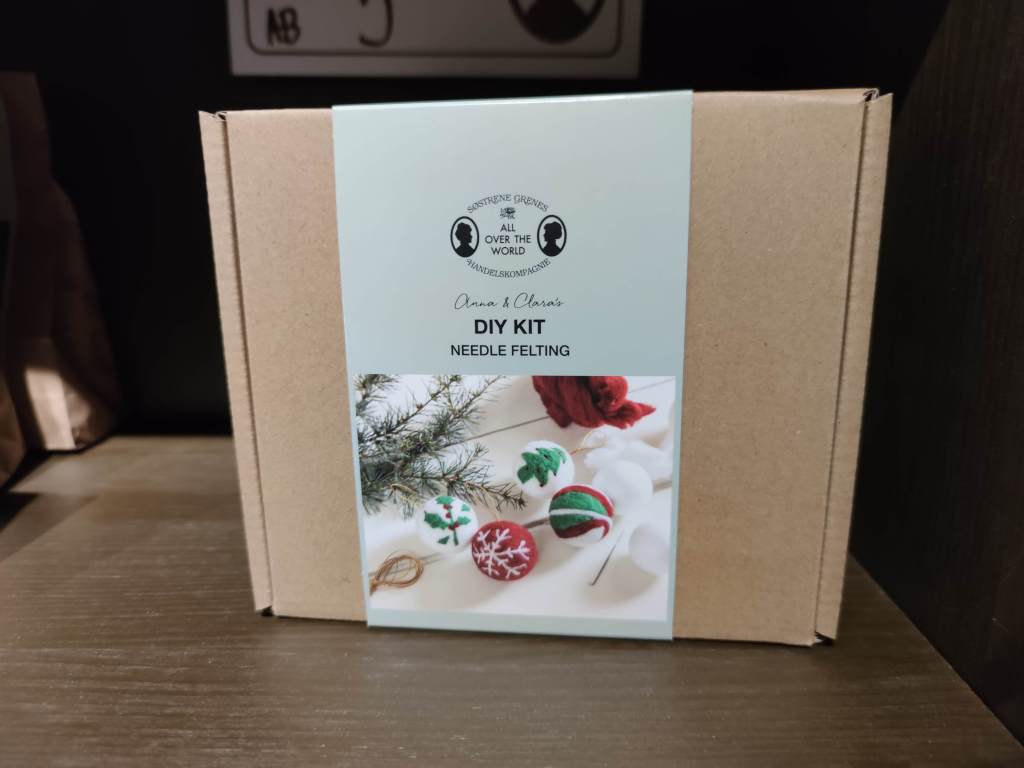 Es enthält Filzwolle, Filznadel, Styroporkugeln zum Befilzen, eine Schaumstoffunterlage, Garn zum Besticken und eine dekorative Schnur zum Aufhängen.