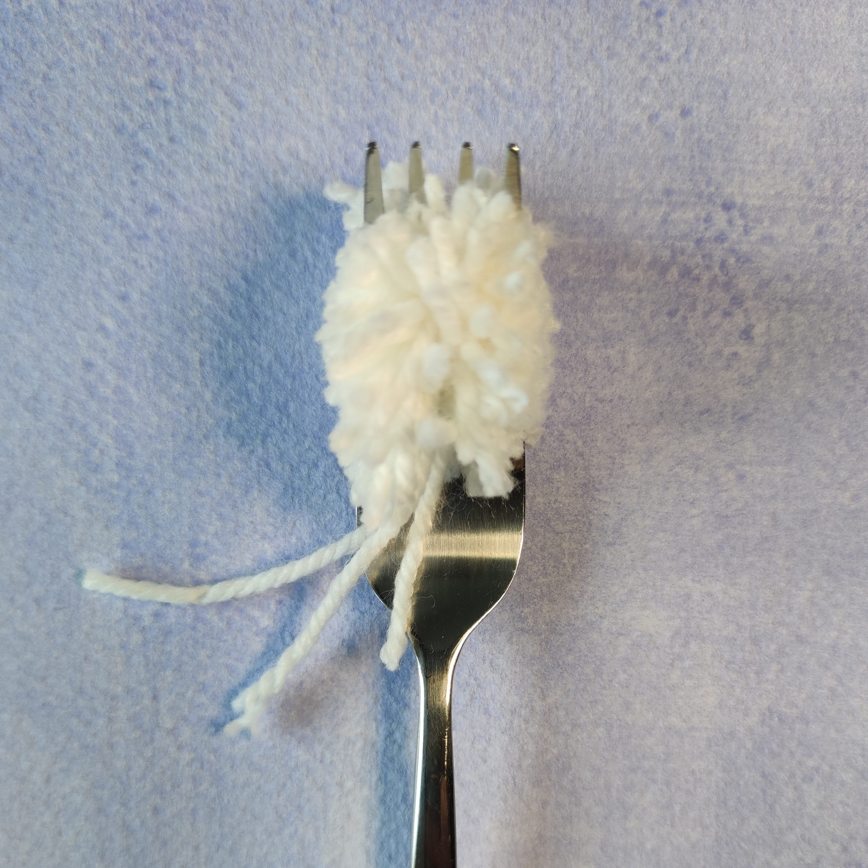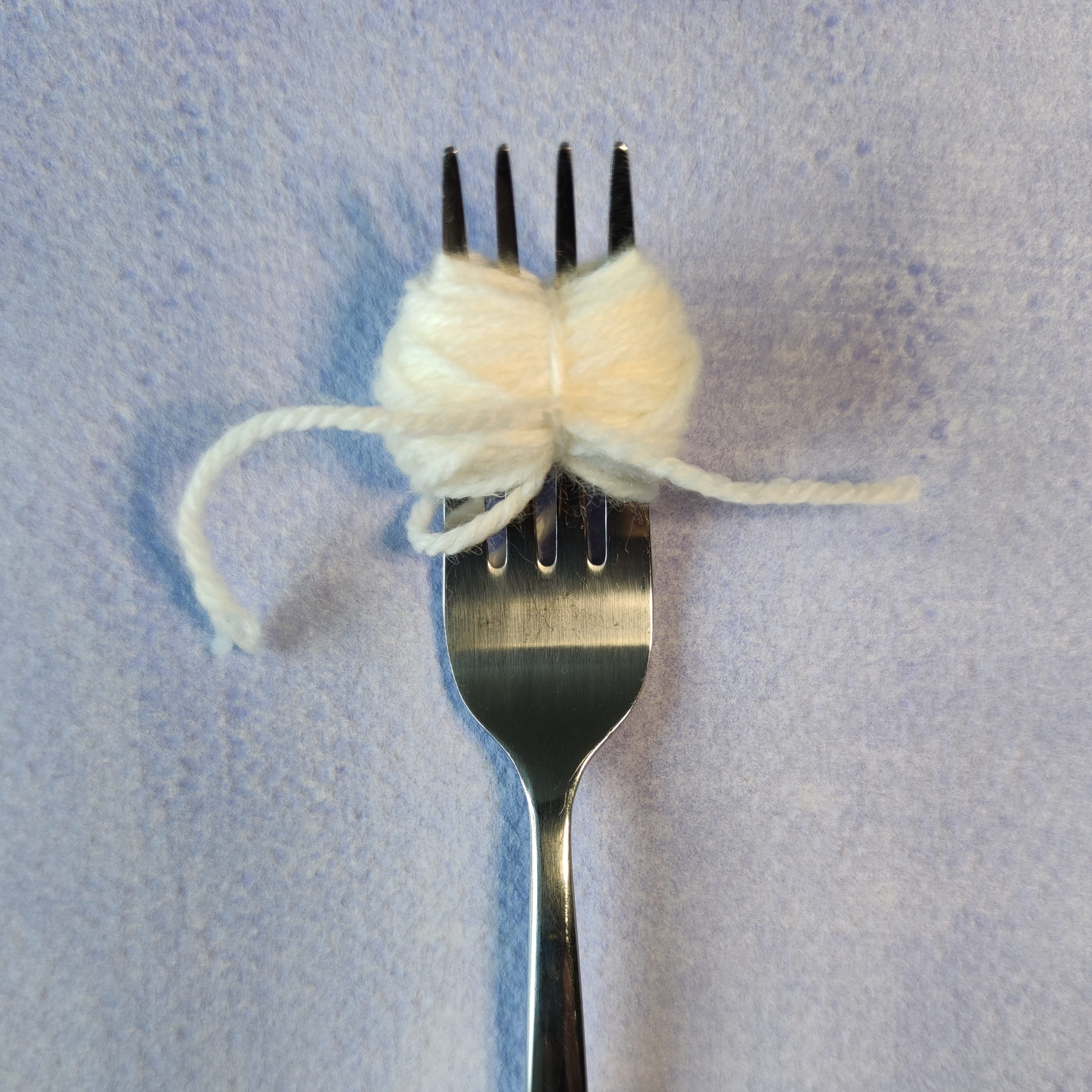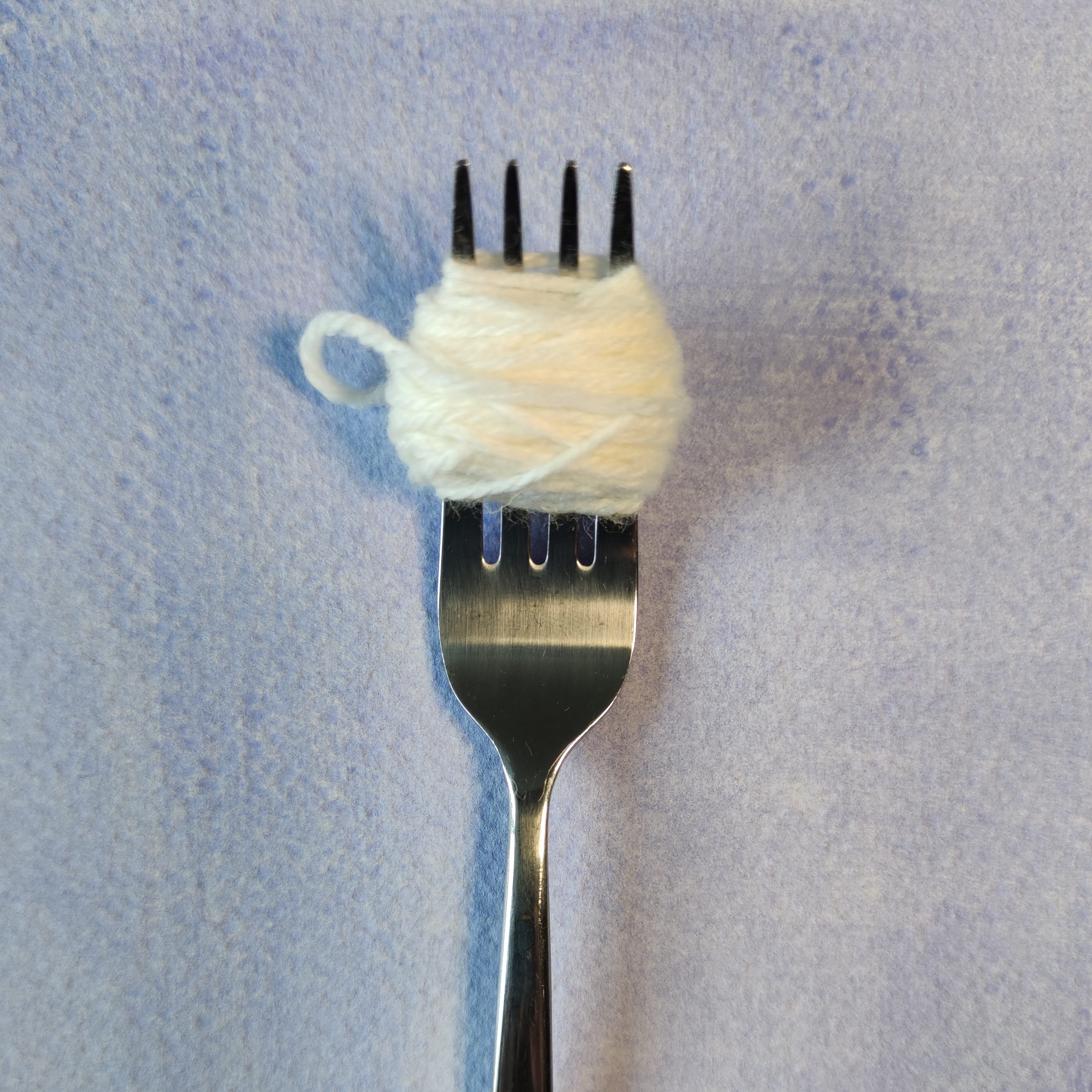 - Wickle das Garn um die Gabel. Achte darauf, dass du dafür nicht zu viel Wolle verwendest, es sollte nicht zu voluminös werden.