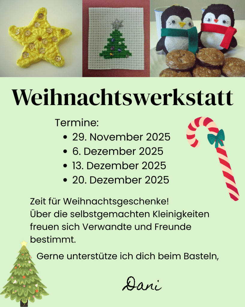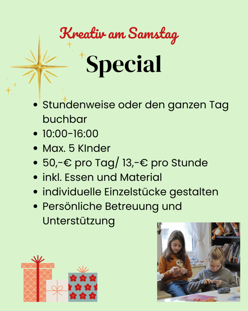 alle Termine findest du im Kalender - Verlängerung der Kreativzeit auf Wunsch möglich.