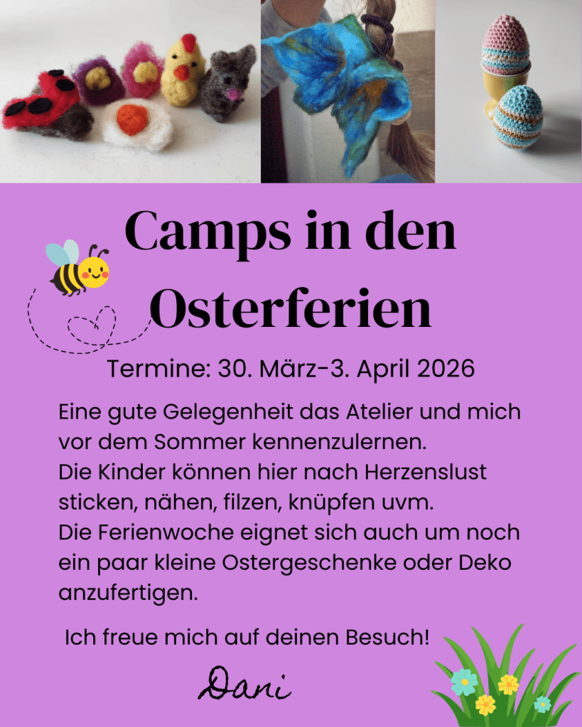 Ja klar, dein Kind kann z.B. einen Tag oder Vormittag in den Osterferien kommen. Oder schau bei „Kreativ am Samstag“ vorbei. Im Kalender findest du alle Termine.